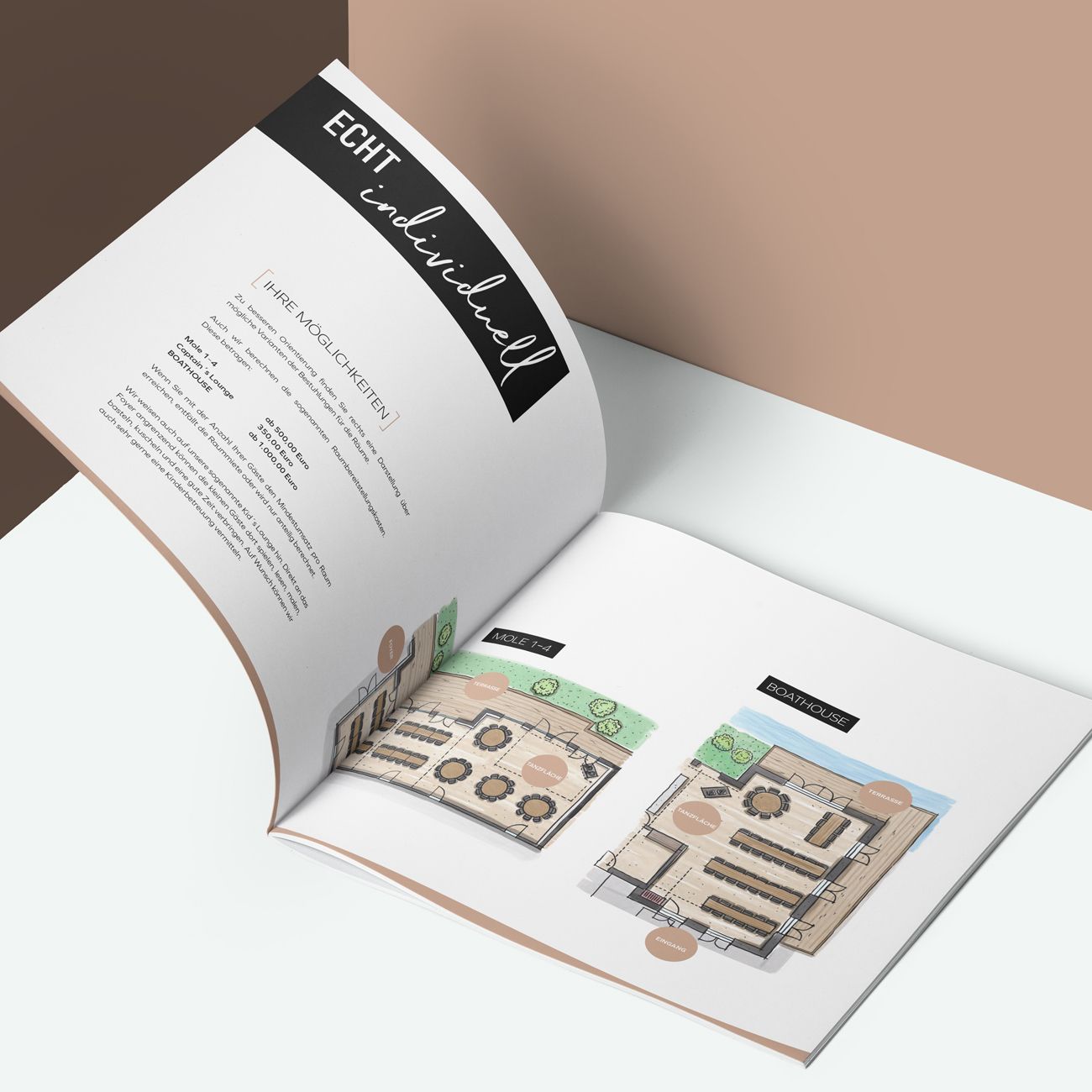 Hochzeitsbroschüre für das River Loft Hotel